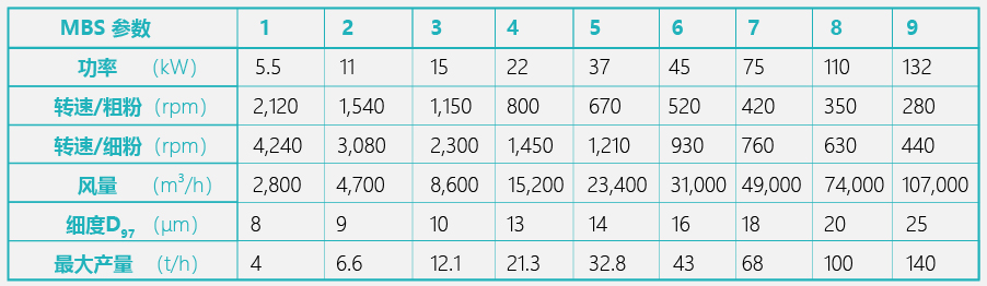 MBS 气流分级机有着特殊的分级轮和导流装置,适用于分级范围在d97 20-200微米之间的中等细度分级。该分级机的特点是:产量高、效率高、能耗低。